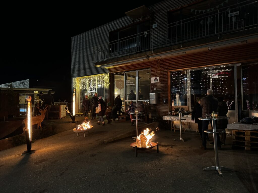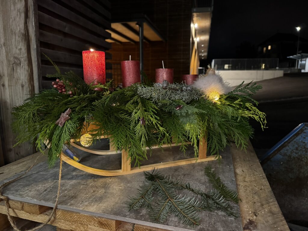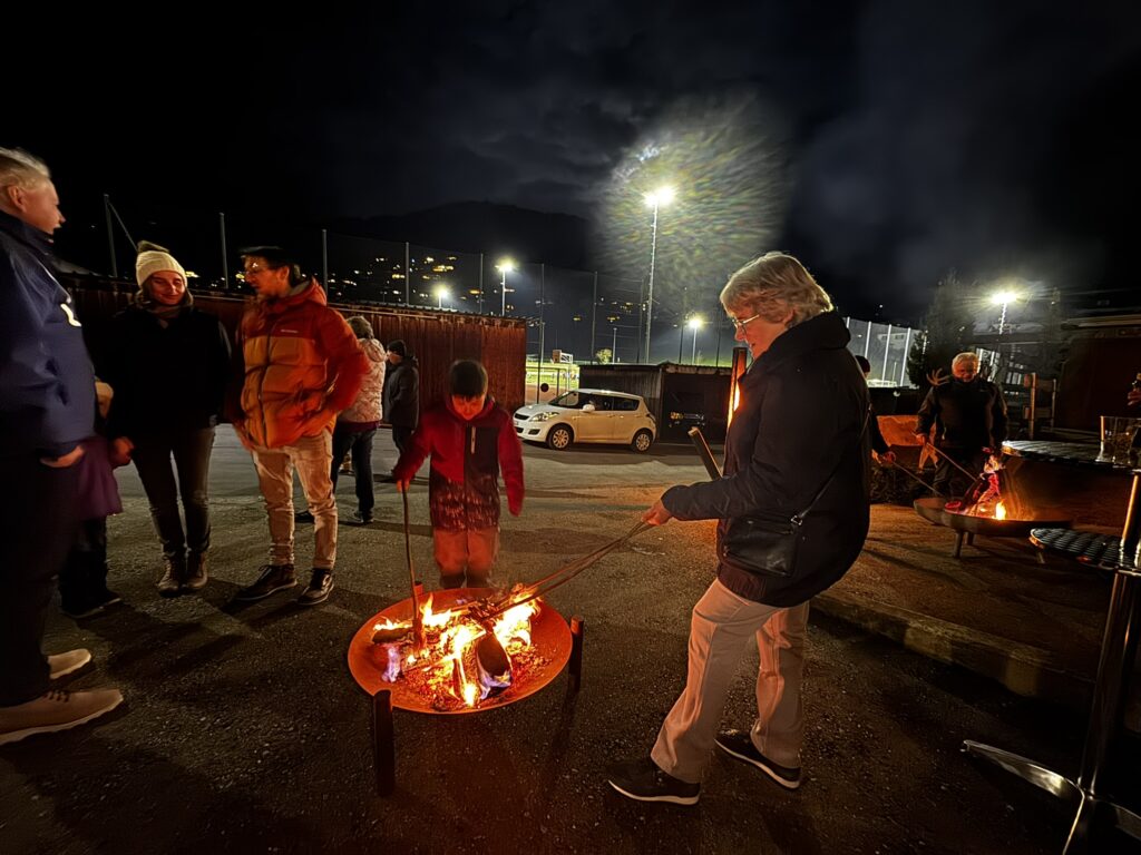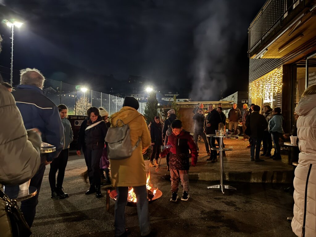 Das Adventsfenster 2023-Event markierte den Beginn der Weihnachtssaison mit der feierlichen Öffnung des ersten Türchens des Adventskalenders. Obwohl der Tag mit Regen begann, verwandelte sich die Szenerie plötzlich in eine bezaubernde Winterlandschaft durch den fallenden Schnee. Zahlreiche Bewohner folgten der Einladung und erlebten gemeinsam eine behagliche Atmosphäre beim Grillen an der offenen Feuerstelle. Warme Getränke trugen dazu bei, dass wir die winterliche Stimmung in vollen Zügen geniessen konnten.
